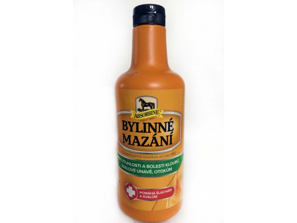 - Již více než 120 let je Absorbine® Bylinné Mazání Liquid (s původním americkým názvem Veterinary liniment, Veterinární mazání) nejprodávanější mazání pro koně na světě. Originální tekutá receptura obsahuje unikátní směs bylin a přírodních olejů, která tiší bolesti namožených svalů a ztuhlých kloubů, ulevuje při zánětech šlach i artritidě. Nástup účinku je rychlý a dlouhotrvající. Navíc: