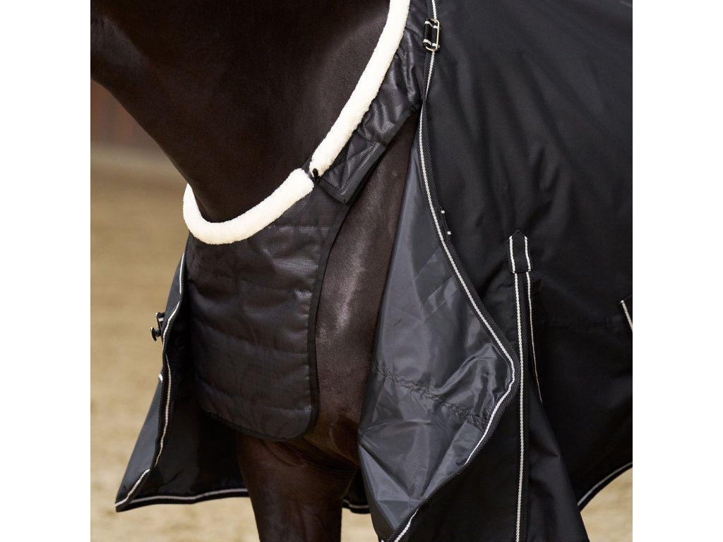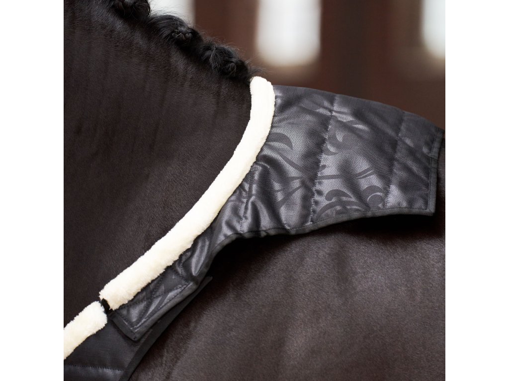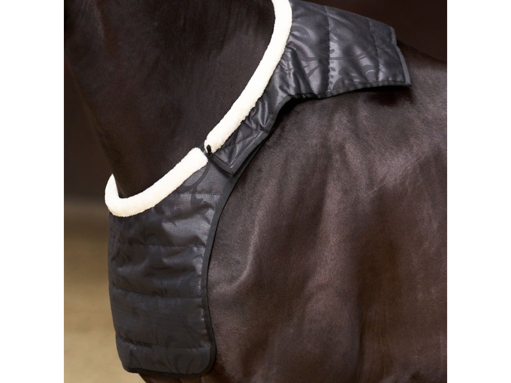 Navržen s důrazem na detail a funkčnost, chrání citlivou oblast hrudi a kohoutku před třením, tlakem a podrážděním. Díky chytrému střihu uzavírá mezery mezi přezkami deky, čímž zajišťuje pevné a pohodlné usazení bez nežádoucího pohybu. Zamezuje působení tvrdých hran a udržuje srst v perfektním stavu – ideální jak do stáje, tak do výběhu.