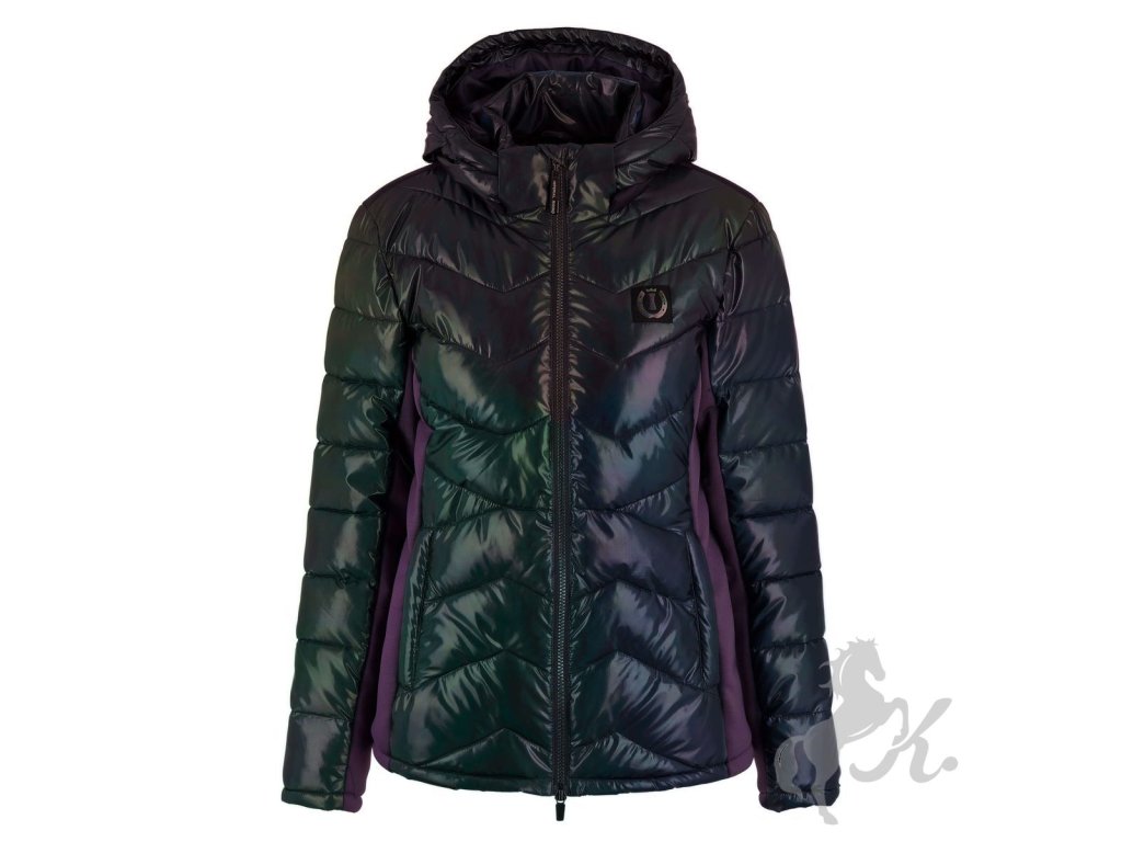 - polstrovaná bunda vyrobená z funkční směsi materiálů v lesklém provedení