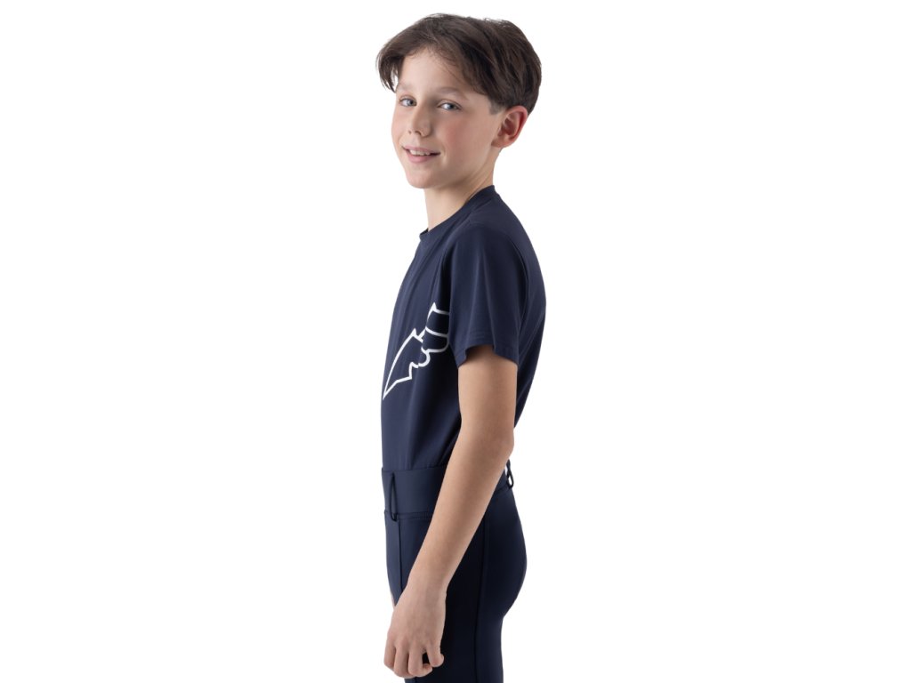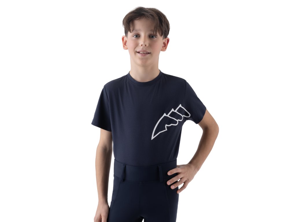 Sportovní vzhled doplňuje výrazné bílé logo na hrudi a potisk Equiline na rukávu, které dodávají tričku svěží a moderní charakter. Díky pohodlnému střihu nabízí dostatek volnosti pohybu a je tak perfektní volbou pro mladé jezdce.