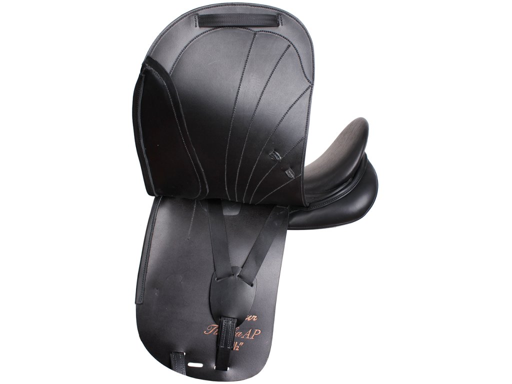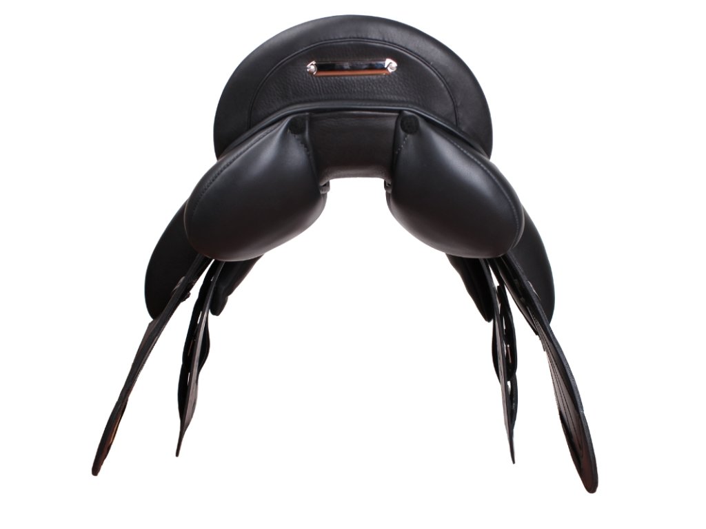 Drezurní sedlo Ithaka s venkovní opěrkou, která výrazněji fixuje nohu jezdce. Sedlo je dodáváno pouze v provedení z dvojité teletiny.