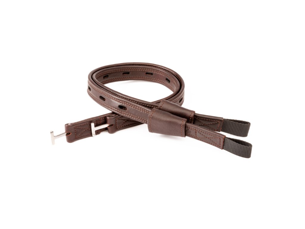 Řemeny se upevňují pomocí T-kusu s krytkou, což poskytuje čistý vzhled a bezpečné uchycení. Jsou určeny výhradně pro drezurní ježdění.