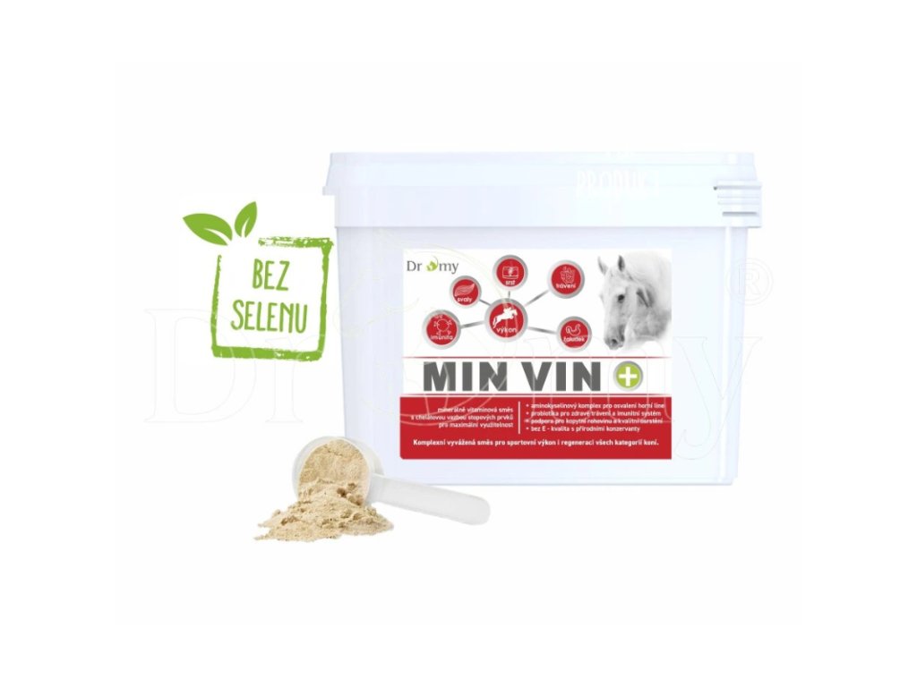 Minerálně vitaminová směs BEZ SELENU s aminokyselinami, probiotiky pro všechny kategorie koní, bez potřeby dotace selenu v krmné dávce.