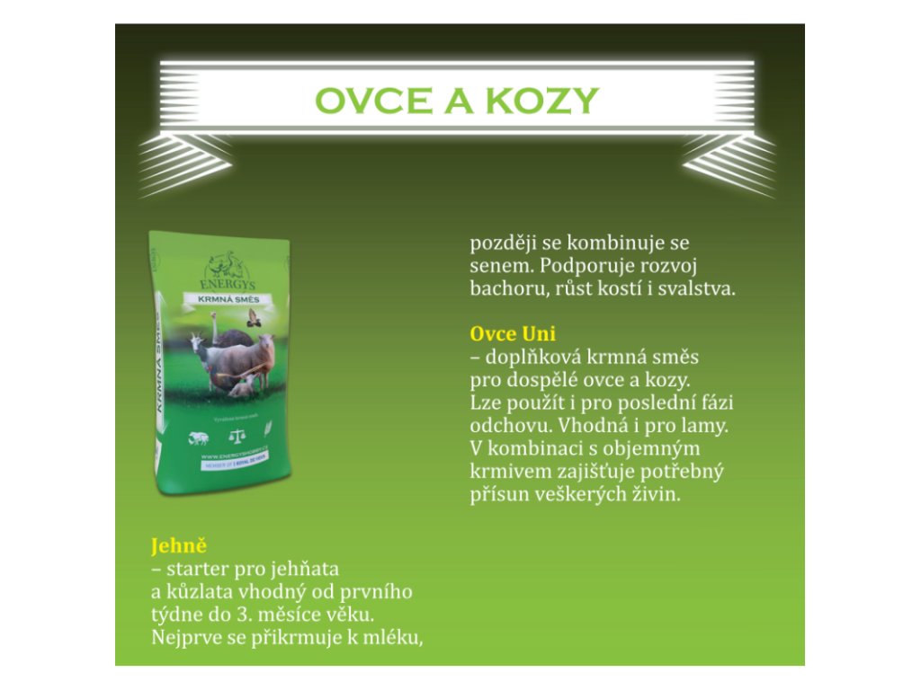 Krmná směs je určena pro ovce, jehňata a kozy.