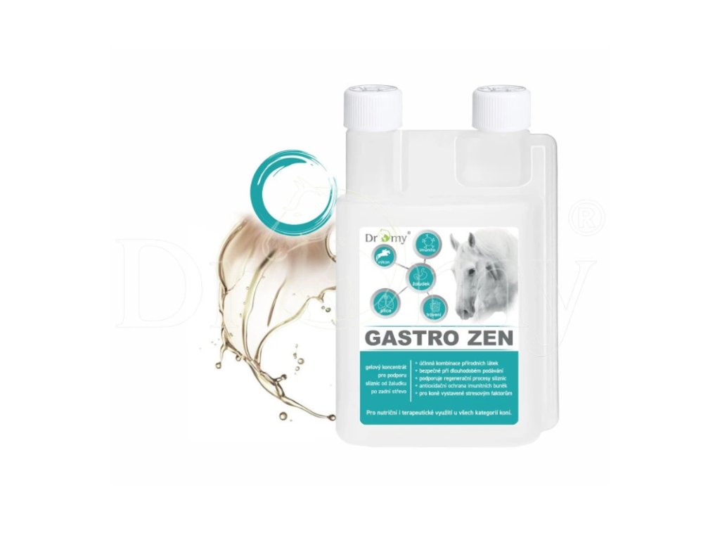 Gastro Zen je doplňkové krmivo ve formě vysoce viskózního emulgelu k podpoře gastrointestinálního zdraví koní, prostřednictvím synergicky působících biologicky aktivních látek. Jeho složení respektuje komplexní vzájemnou provázanost mezi funkcemi trávicího traktu a slizniční imunitou. Vychází z principů rovnováhy, ochrany a regenerace, čímž optimalizuje přirozené fyziologické procesy a pomáhá udržet stabilitu i v podmínkách zátěže.