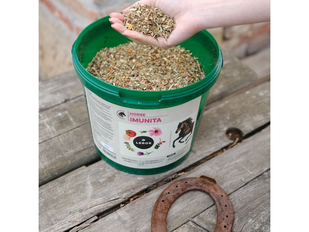Bylinná směs podporuje přirozenou obranyschopnost organismu a působí blahodárně na imunitní systém koní.