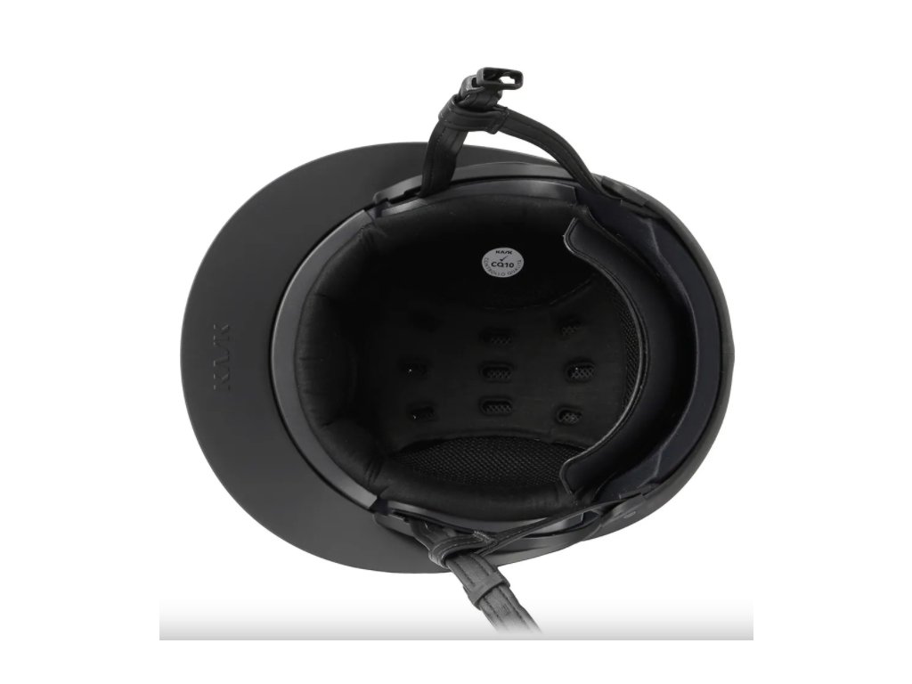 - uzavírání pod bradou je vyrobené z odolné eko kůže, je velmi měkké a hypolergenní, čímž předchází podráždění pokožky jezdce pod bradou