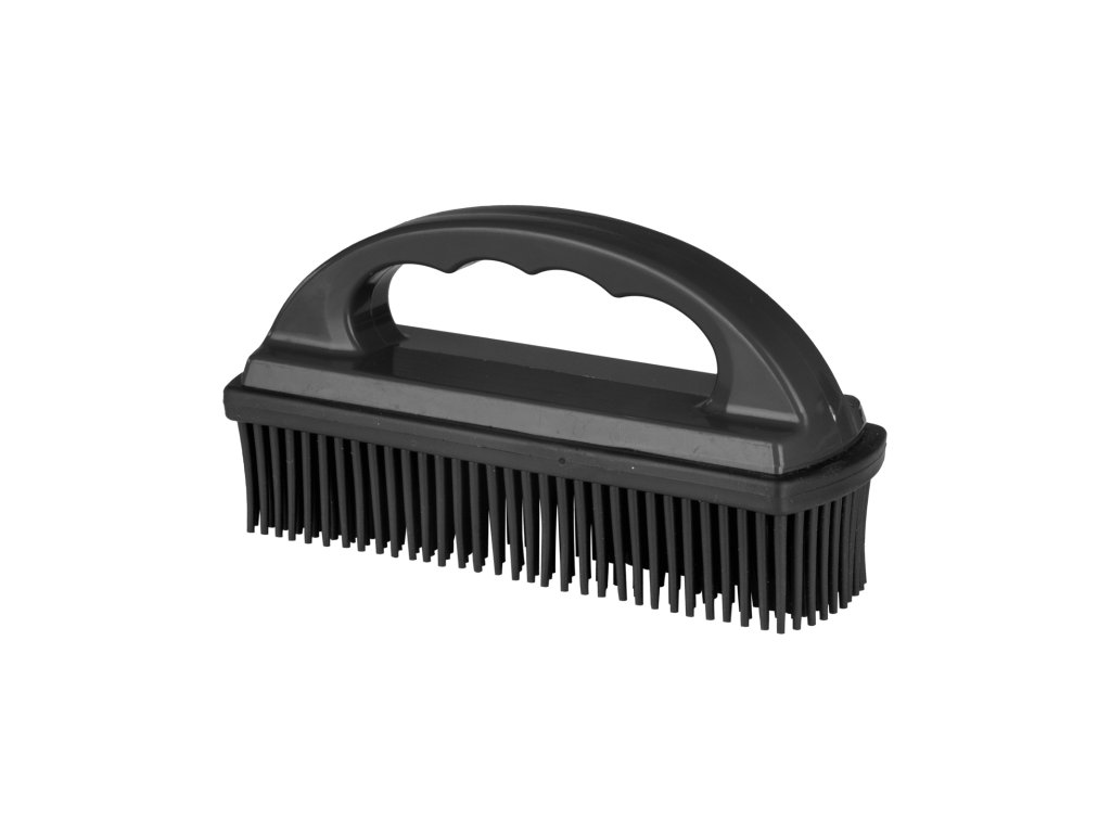 Praktický pomocník do stáje i domácnosti! Tento odstraňovač chlupů s gumovými štětinami a pohodlnou rukojetí účinně odstraní zvířecí srst z deček, dek, oblečení a dalších textilií. Díky gumovému povrchu s výstupky je šetrný k materiálům a zároveň velmi účinný.