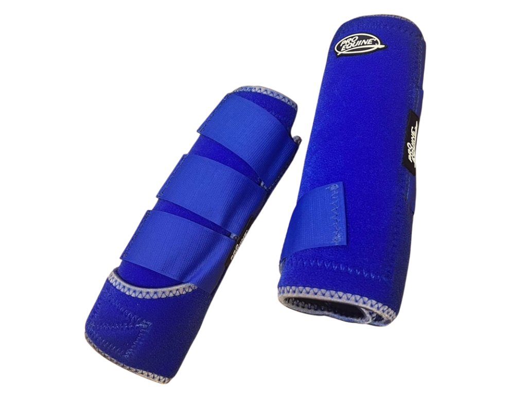 Kvalitní kloubové chrániče od Pro Equine v modré barvě.