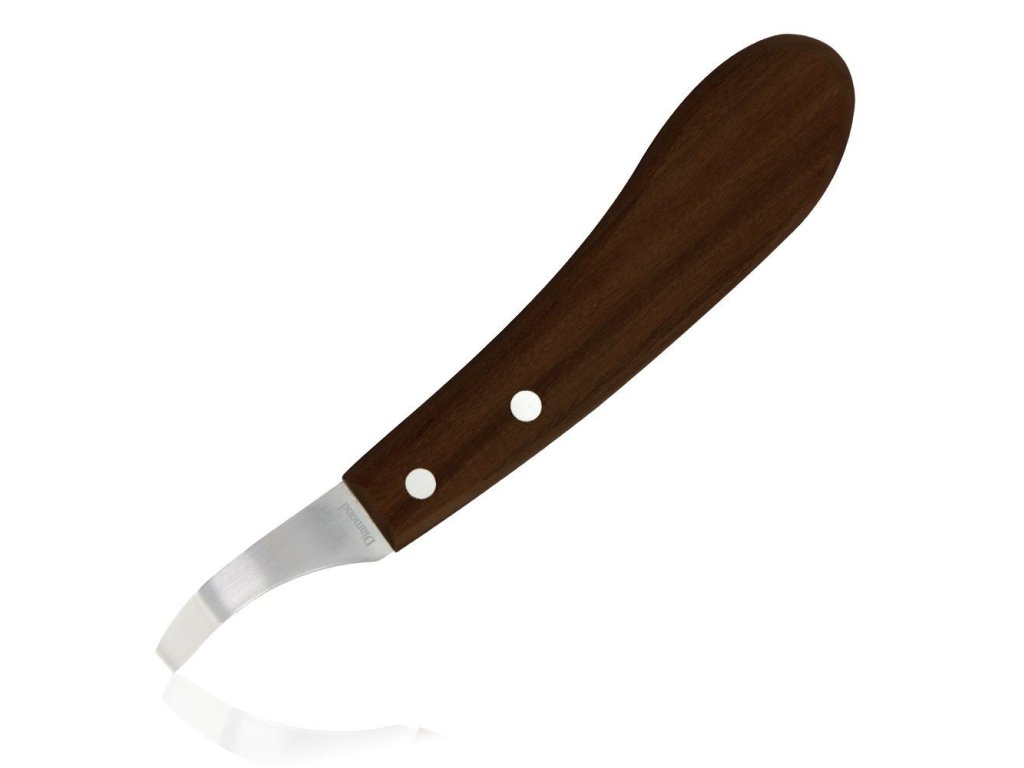 Oblíbený kvalitní kopytní nůž špičkové kvality nahrazující pravý i levý. Ostří vyrobené ze speciální oceli pro lepší odolnost. Delší dřevěná rukojeť s ergonomickým tvarem; vhodná pro oboustranné řezání
