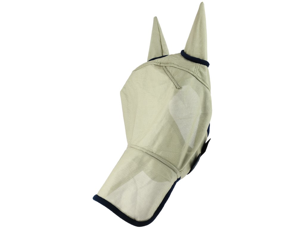 Model je vybaven integrovanými ušima, otvorem pro hřívu a ochranou nozder, která pomáhá chránit koně před hmyzem i sluncem. Okraje jsou zakončeny měkkým fleecovým lemem pro větší komfort. Elastický pásek v oblasti nátylníku pomáhá zajistit stabilní usazení masky na hlavě koně.