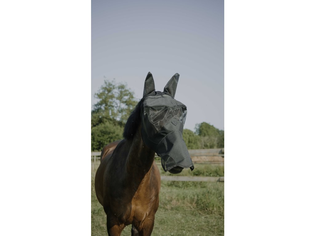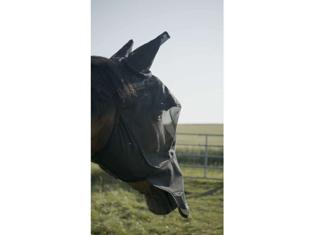 Tato maska proti hmyzu je navržena pro každodenní používání a nabízí ideální kombinaci pohodlí, odolnosti a ochrany. Poskytuje účinnou bariéru proti obtěžujícímu hmyzu a zároveň chrání citlivé části hlavy koně před slunečním zářením díky UV ochraně 50.
