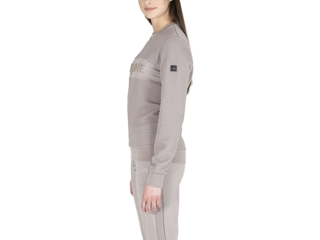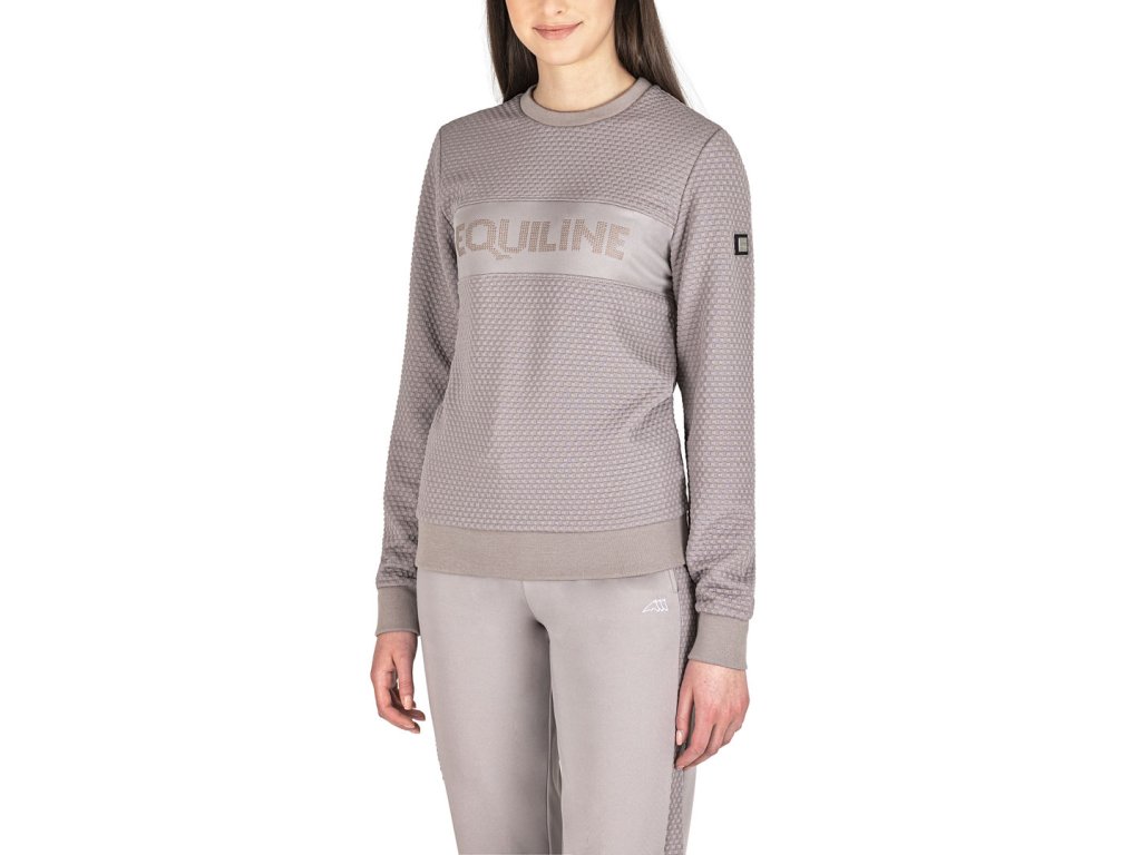 Krásná volnočasová mikina Equiline z texturované látky zbobená nápisem EQUILINE z malých kamínků.