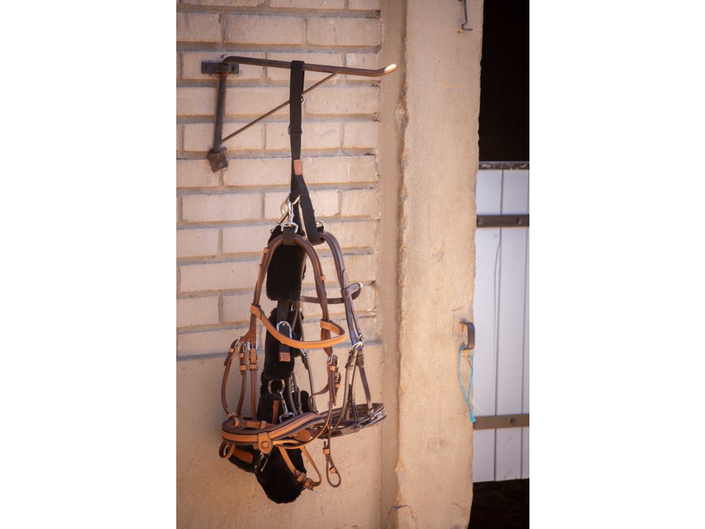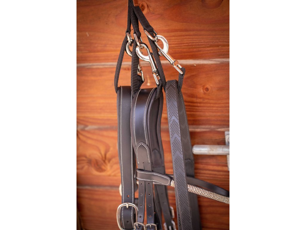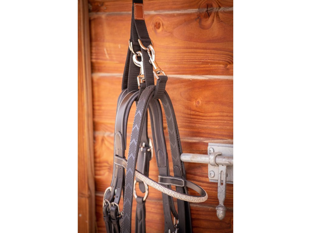 Ať už na závodech nebo ve stáji, zavěste své vybavení jediným cvaknutím karabin. Díky velmi jednoduchému systému nylonových popruhů a karabin lze jednotlivé části nejen uzdečky snadno a rychle zavěsit bez námahy a prakticky kdekoliv. Tento vysoce odolný doplněk do stáje je inovativní, lehký a maximálně praktický pro každodenní použití.
