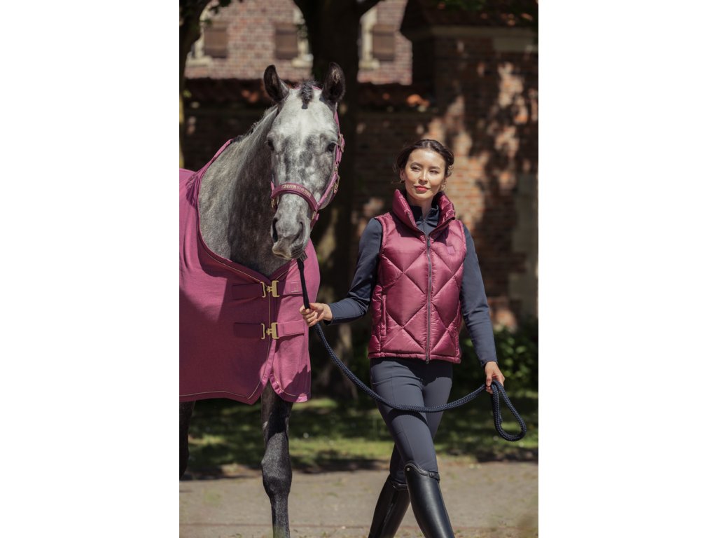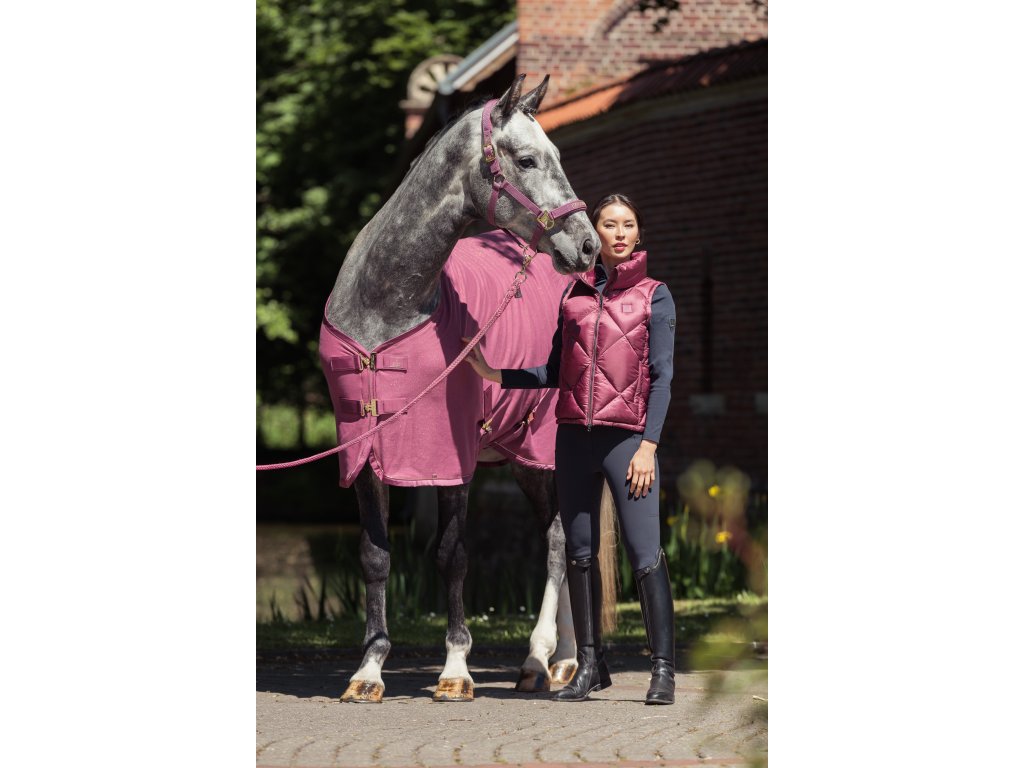 Deka je vybavena dvojitým předním zapínáním na suchý zip, odnímatelnými křížovými popruhy a integrovaným ocasním popruhem pro stabilní usazení. Ideální i jako lehká stájová nebo transportní deka.