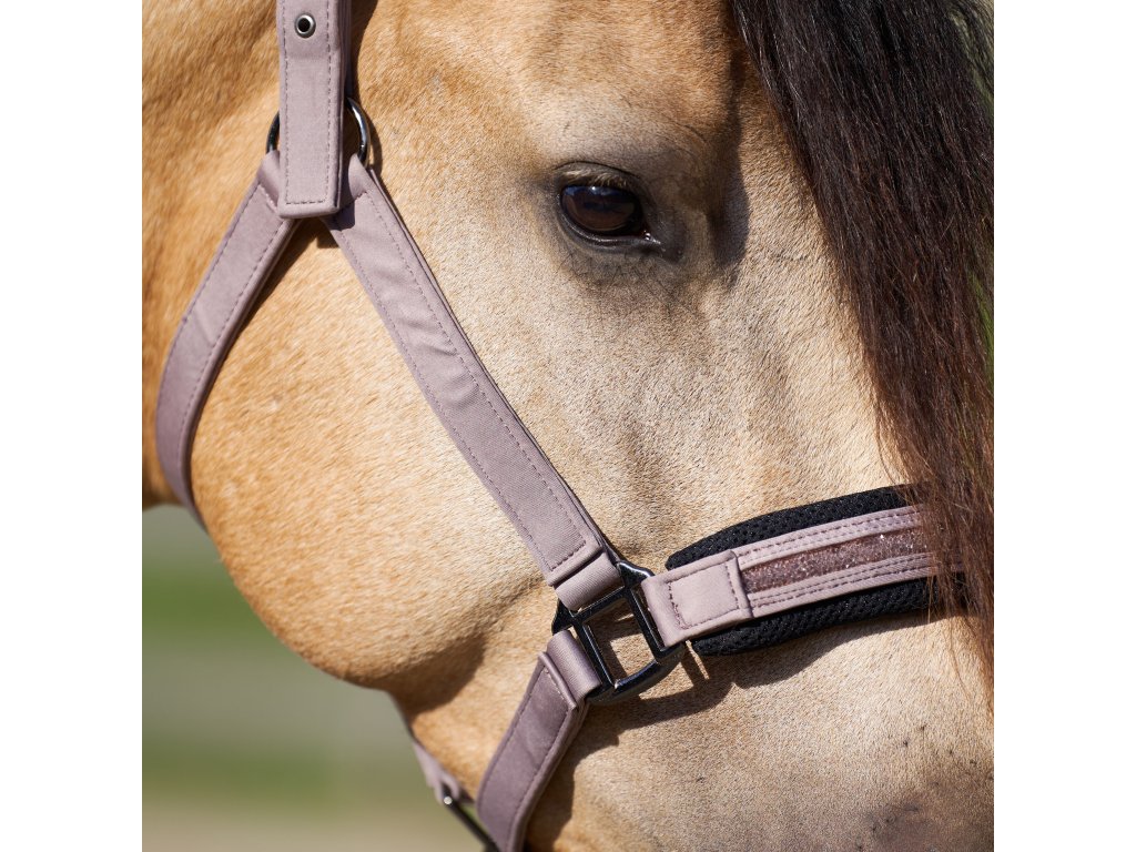 Tato ohlávka od Imperial Riding zaujme třpytivým nánosníkem a kombinuje pohodlí s praktičností díky polstrování z softshellu a síťoviny na nánosníku i nátylníku, které zajišťuje prodyšnost a měkký kontakt s koněm.