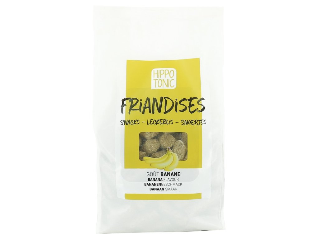 Složení: ovesné otruby, pšeničné otruby, uhličitan vápenatý, ječmen, melasa z cukrové třtiny, kukuřice, 0,2% banán. Analytické složení: hrubý protein 10,0 %, hrubý tuk 3,3 %, hrubá vláknina 13,1 %, hrubý popel 12,5 %, vápník 3,21 %, sodík 0,05 %, fosfor 0,51 %.