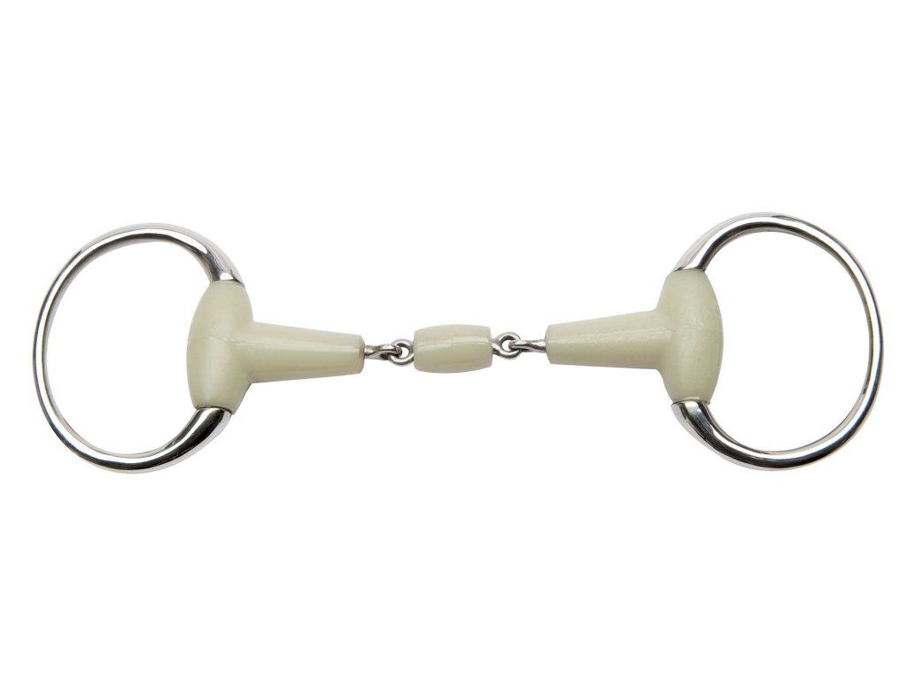 Dvoulomená oliva s jemnou jablečnou příchutí je navrženo pro maximální komfort a lepší přijatelnost udidla. Dvojitý kloub zajišťuje jemnější a rovnoměrnější působení na koňskou hubu, zatímco středový váleček podporuje uvolnění a aktivitu při žvýkání.