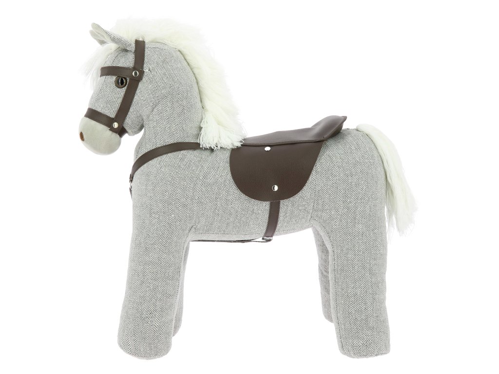 Stojící plyšový kůň, který unese malého jezdce na svém hřbetě! Díky pevné kovové konstrukci je stabilní a odolný. Součástí je také sedlo a uzdečka z imitace kůže, které dodávají realistický vzhled.