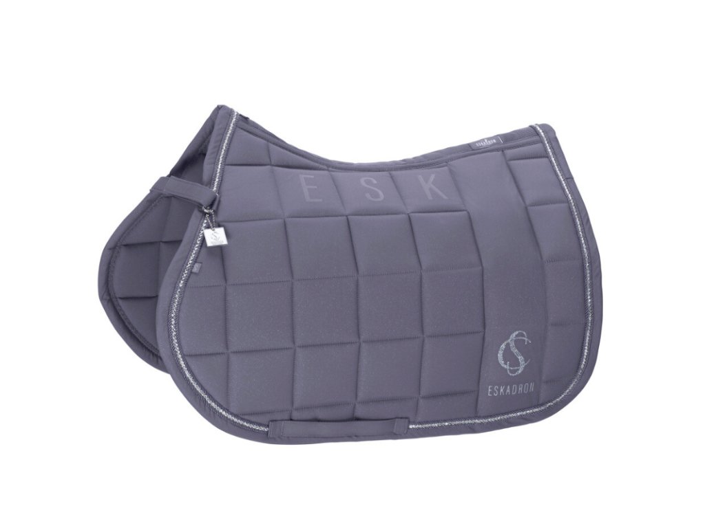 Luxusní dečka Eskadron Big Square Sparkle s jemným třpytem z exkluzivní jarní a letní kolekce Classic Sports 2026. Rychleschnoucí vnitřek, protiskluzový silikon a prodyšný mesh kanál na hřbetě.