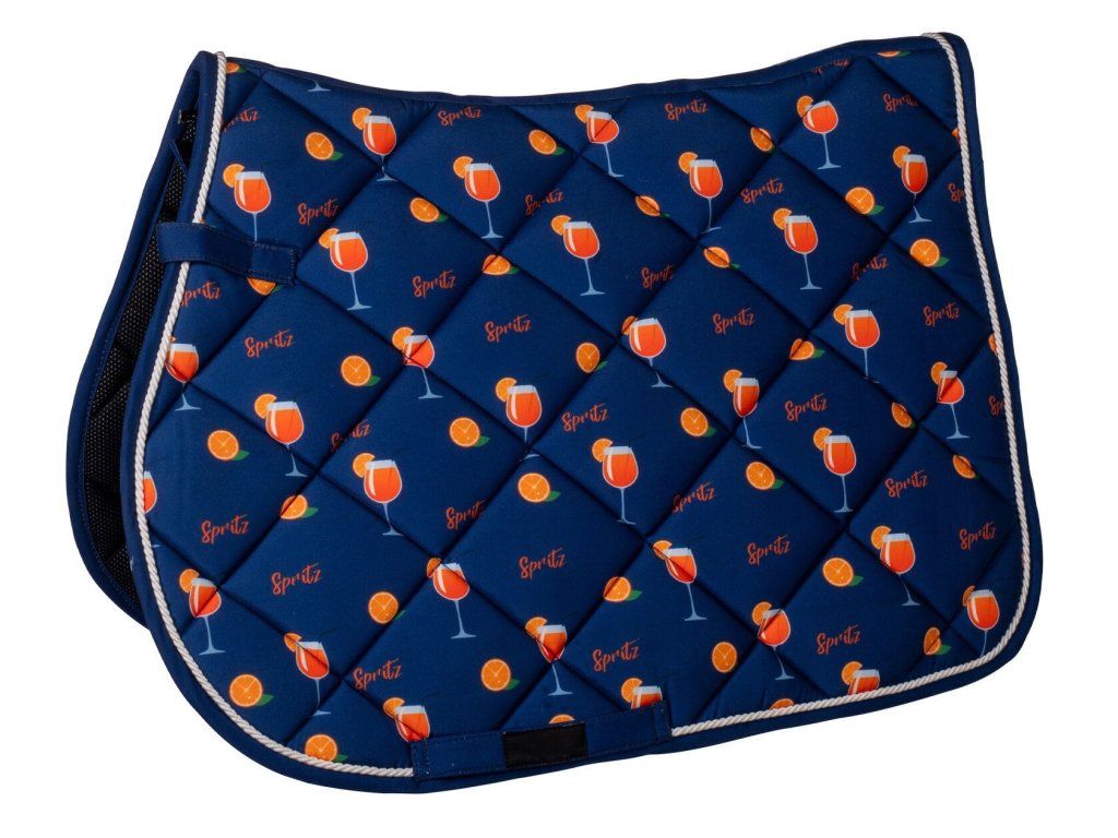 Tato podsedlová dečka od HKM z kolekce Splash Spritz zaujme moderním vzhledem s módním potiskem a elegantním lemováním s ozdobnou šňůrkou, díky čemuž skvěle doplní výbavu každého koně.