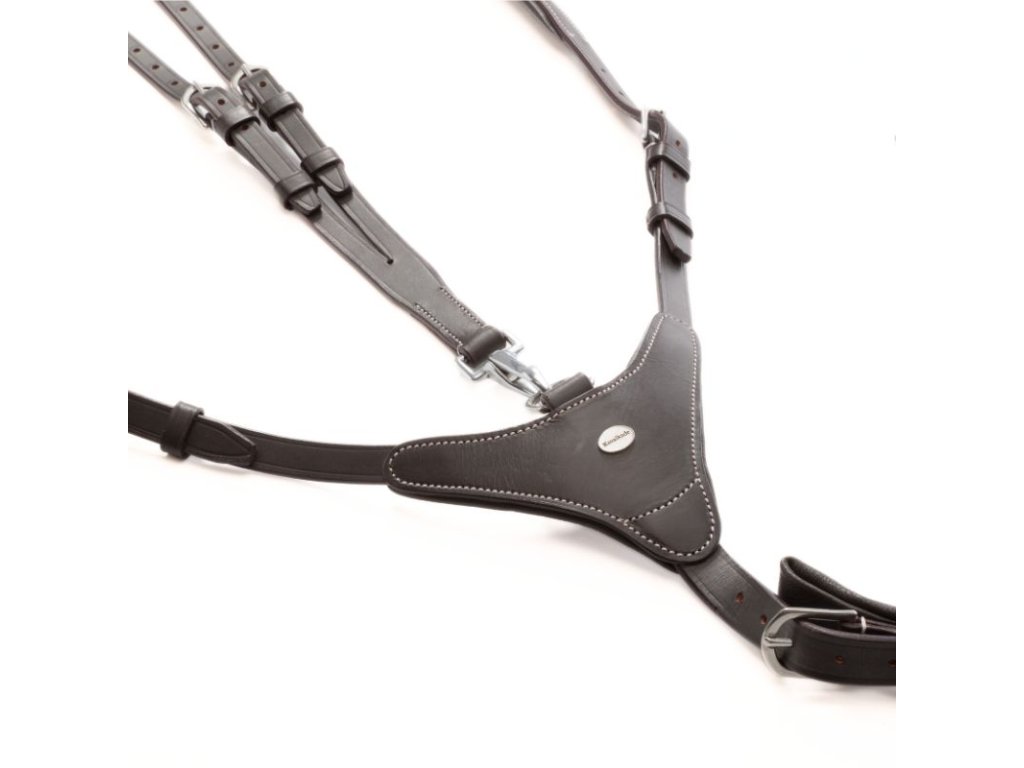 Poprsník „Dexter“ poskytuje výbornou stabilitu sedla, aniž by omezoval přirozený pohyb koně. Díky vysokému 3bodovému uchycení účinně brání sklouzávání sedla dozadu, přičemž respektuje volnost ramen. Elastický panel v oblasti plecí umožňuje maximální flexibilitu a přizpůsobení se pohybu koně při každém kroku.