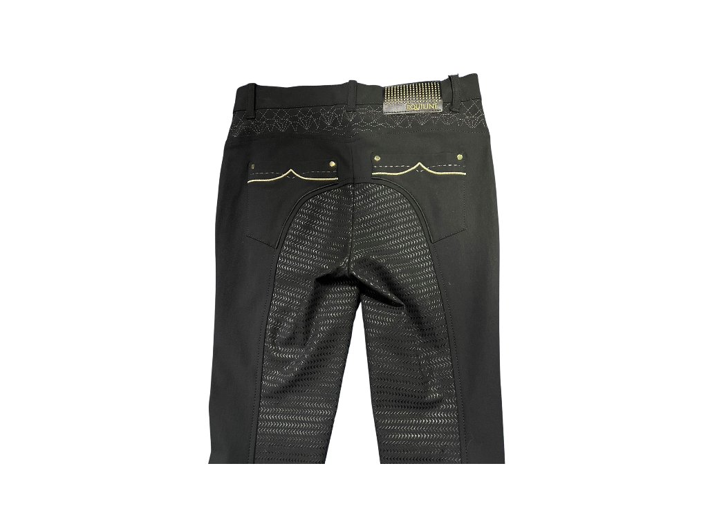 Velmi slušivé rajtky z kolekce Equiline. Vyrobeny z perfektního a úžasně příjemného Schoeller materiálu, který je trvanlivý, bi-elastický, prodyšný a výborně si drží tvar, nevytahuje se, je vysoce odolný a považováný za špičku ve výrobní technologii. Materiálem X-GRIP jsou rajtky vybaveny v oblasti celého sedu. V dolní části jsou ukončeny velmi oblíbeným elastickým ukončením SFS (Stretch Fastening System).