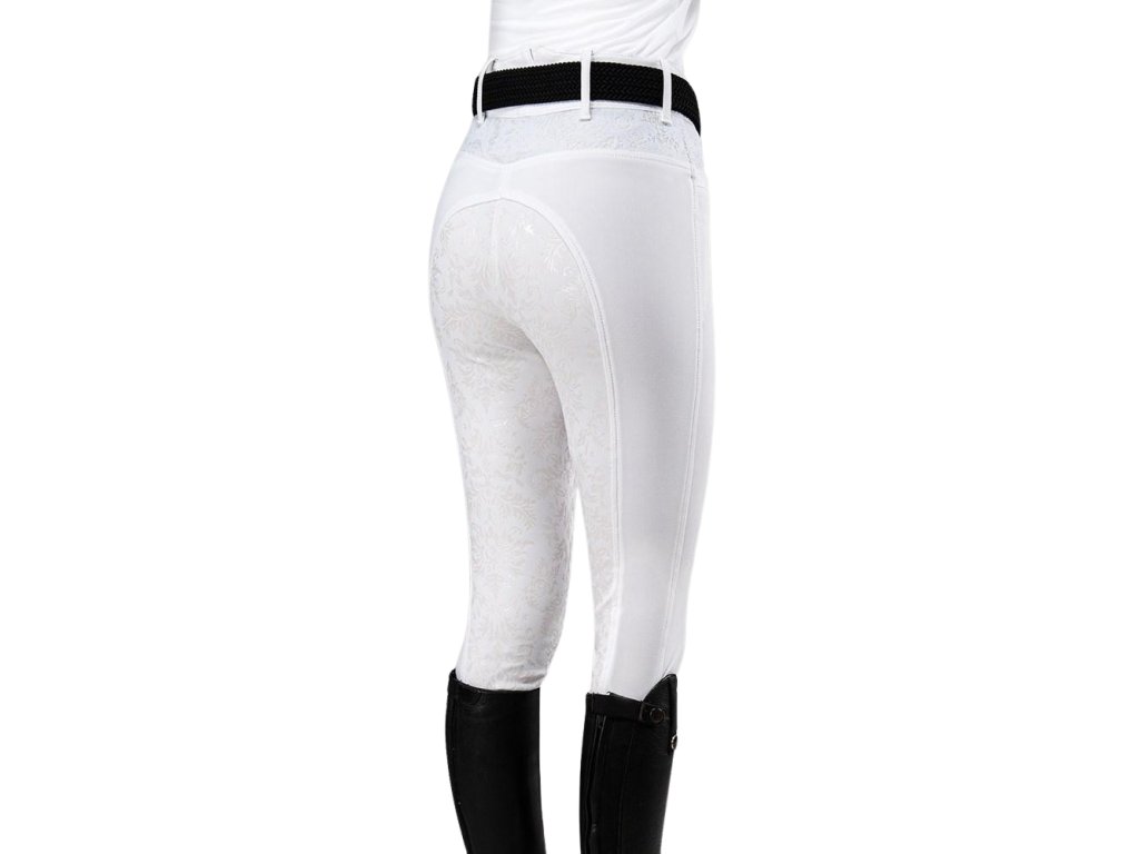 Jezdecké kalhoty od značky Equiline s vysokým pasem, který je v zadní části prodloužený pro optimální padnutí a maximální pohodlí v sedle. Silikonový full-grip s elegantním vzorem zajišťuje stabilní dosednutí a jistotu při jízdě.
