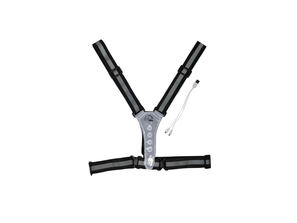 Vestu pohání dobíjecí baterie, což znamená pohodlné používání bez nutnosti výměny baterií. Konstrukce je plně nastavitelná, lehká a příjemná na nošení, takže se pohodlně přizpůsobí každé postavě i typu pohybu. Díky voděodolnému provedení zůstáváte viditelní i v dešti, mlze nebo při špatných světelných podmínkách. Materiál zároveň odráží světlo, takže vesta zajišťuje bezpečnost i bez aktivního LED režimu.