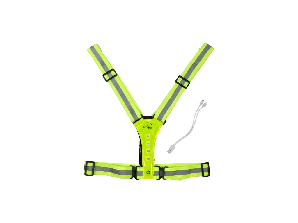 Vestu pohání dobíjecí baterie, což znamená pohodlné používání bez nutnosti výměny baterií. Konstrukce je plně nastavitelná, lehká a příjemná na nošení, takže se pohodlně přizpůsobí každé postavě i typu pohybu. Díky voděodolnému provedení zůstáváte viditelní i v dešti, mlze nebo při špatných světelných podmínkách. Materiál zároveň odráží světlo, takže vesta zajišťuje bezpečnost i bez aktivního LED režimu.