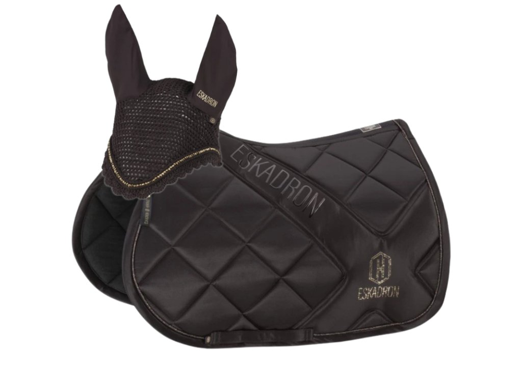 Elegantní vzhled doplňuje kombinace šňůrky s krystalky, Eskadron nápis na uchu a flag label. Tento model nabízí funkční ochranu proti hmyzu i stylový vzhled během tréninku i závodů.