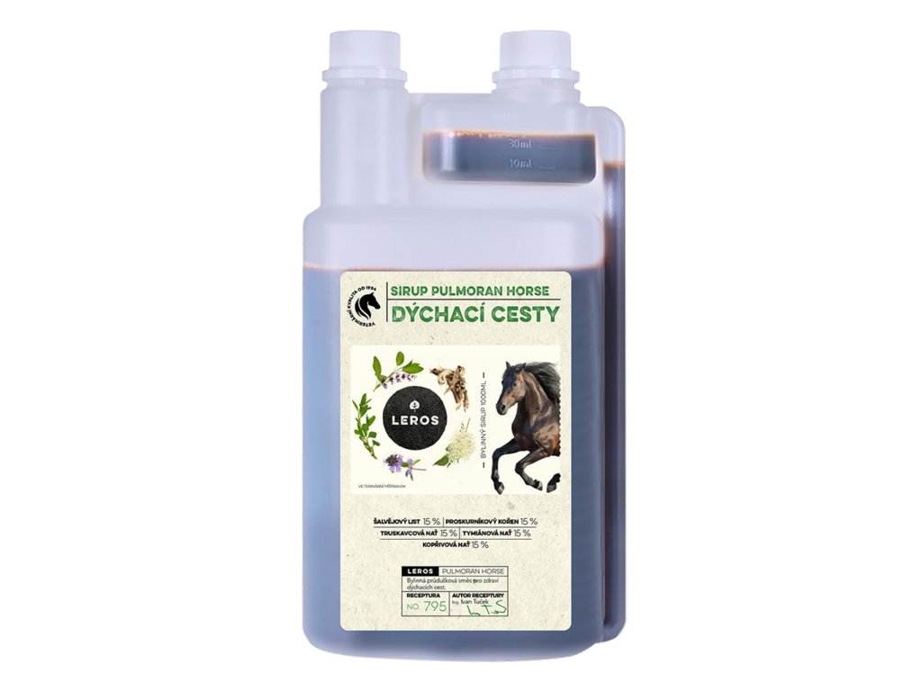 Leros Sirup Pulmoran Horse je bylinný sirup, který podporuje normální funkci dýchacího ústrojí koní. Byliny obsažené v sirupu napomáhají rozpouštění hlenů a odkašlávání. Použití sirupu je vhodné i jako preventivní ochrana.