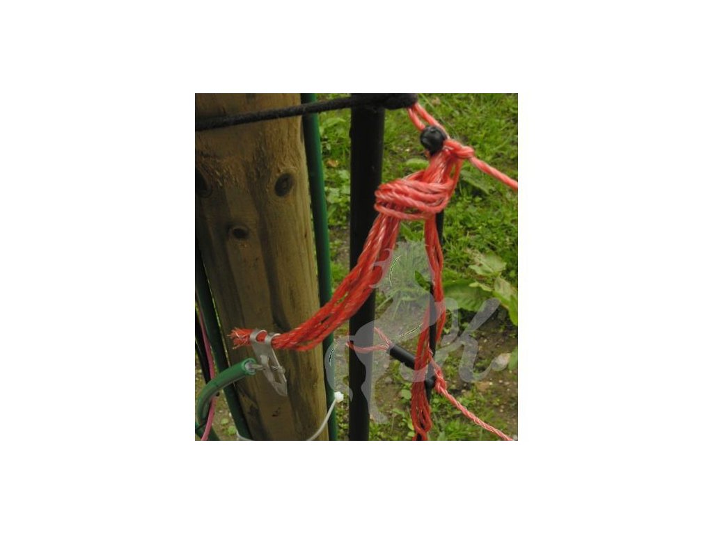 Výška sítě 90 cm. Horní vodič sítě pro ovce 6 x 0,20 nerez, ostatní vodorovné vodiče 3 x 0,20 mm, spodní lanko bez vodiče.
