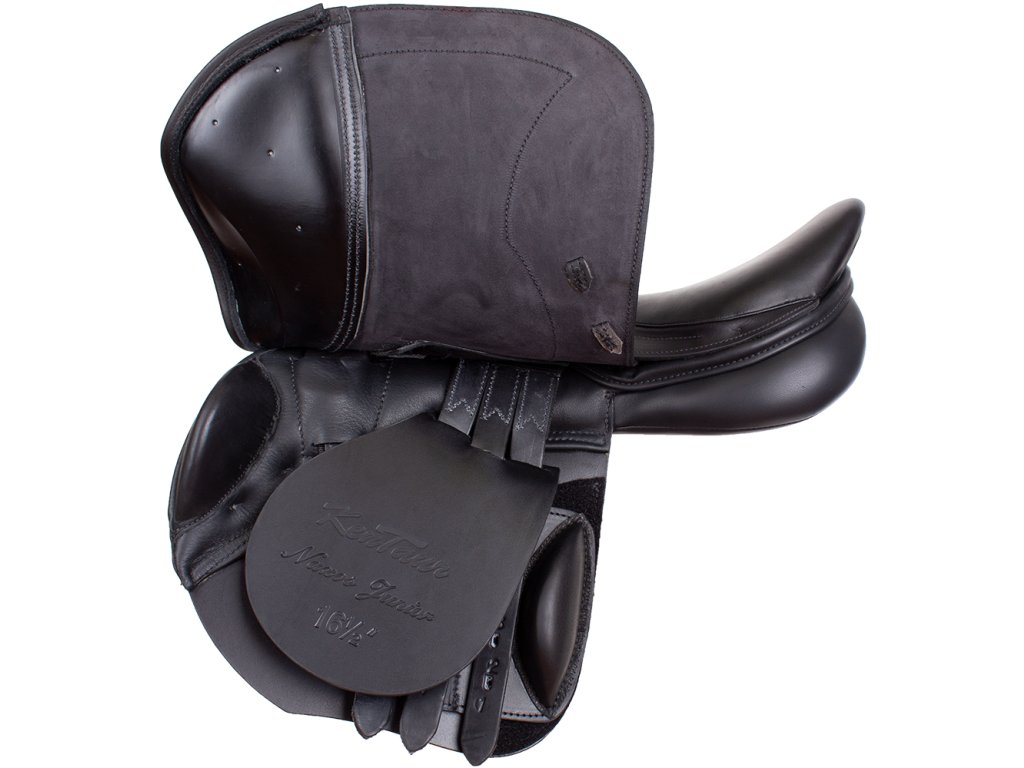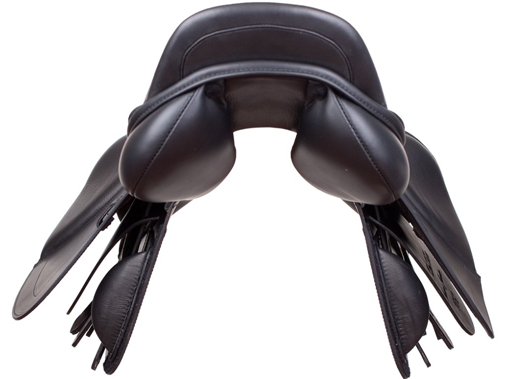 Sedlo Naxos v juniorském provedení. Šířka a hloubka kostry, délka a vyklonění bočnic, velikost opěrek, vše optimálně přizpůsobené potřebám mladých jezdců.
