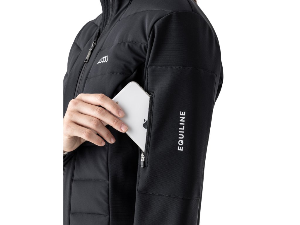 Dámská softshellová bunda od italské značky Equiline. Bunda je kompatibilní s airbagovou vestou. Kapsa na telefon na rukávu.
