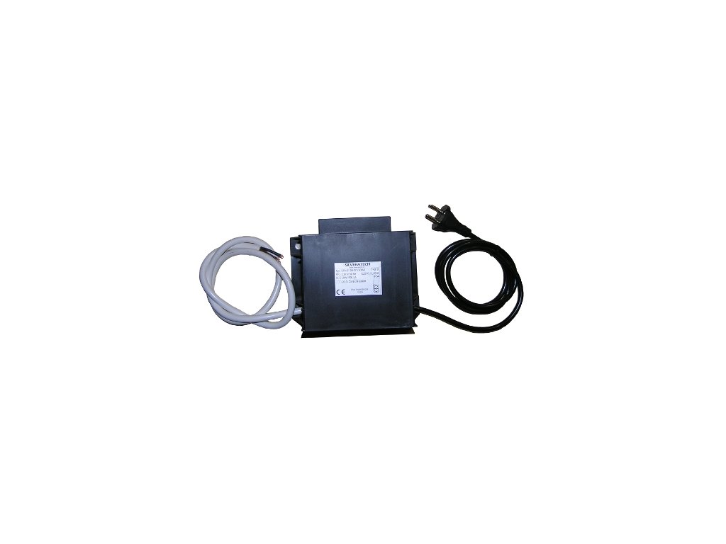 Trafo pro vyhřívané napáječky. Výkon 200 W, 300 W, 400 W nebo 500 W. CE, IP 54. Připojení transformátoru do elektrické sítě pomocí vidlice.