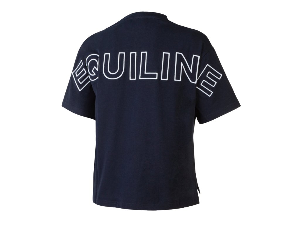 Dámské módní tričko od italské značky Equiline z jarní kolekce. Kratší střih. Velký nápis EQUILINE přes záda, vepředu logo Equiline.