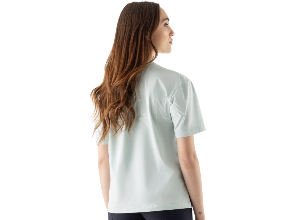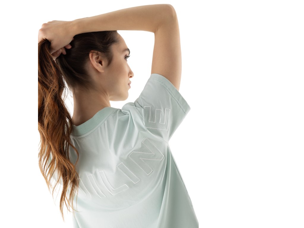 Dámské módní tričko od italské značky Equiline z jarní kolekce. Kratší střih. Velký nápis EQUILINE přes záda, vepředu logo Equiline.