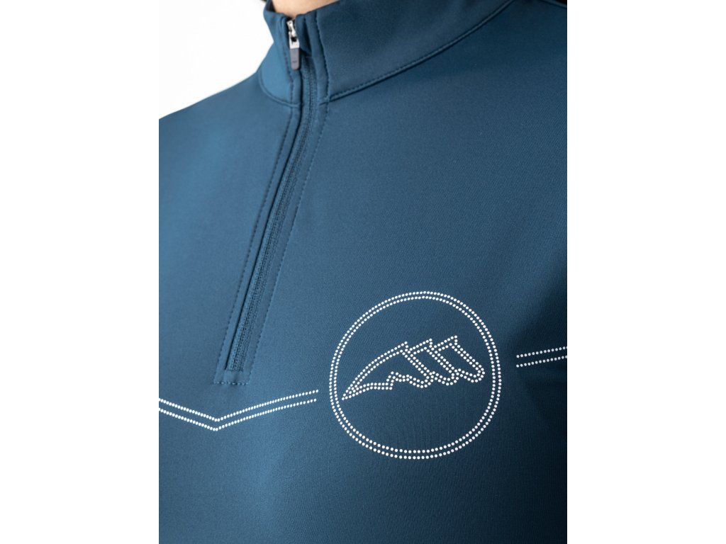 Kontrastní logo na hrudi a rukávu dodává tričku sportovní, ale elegantní vzhled. Ideální jako základní vrstva pod bundu nebo jako samostatný top pro aktivní dny v sedle i mimo něj.