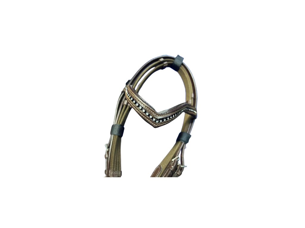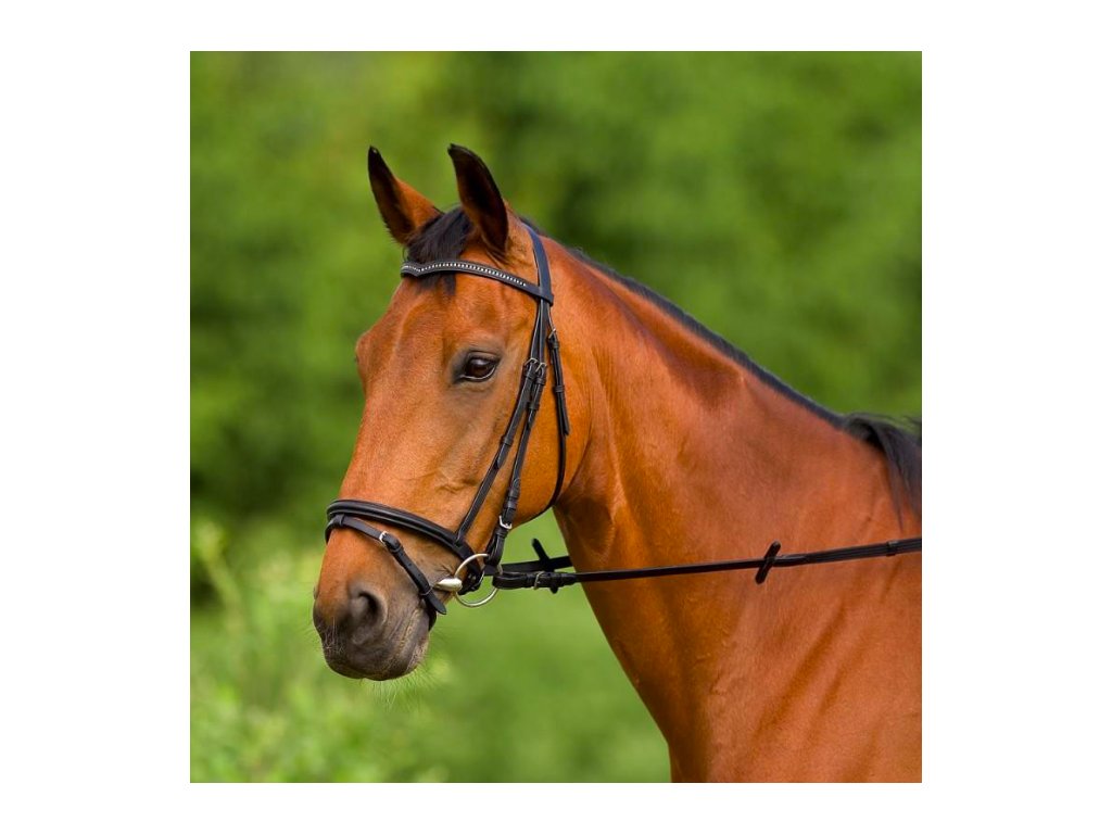 Uzdečka od Excelsior s kombinovaným nánosníkem a čelenkou do špičky.