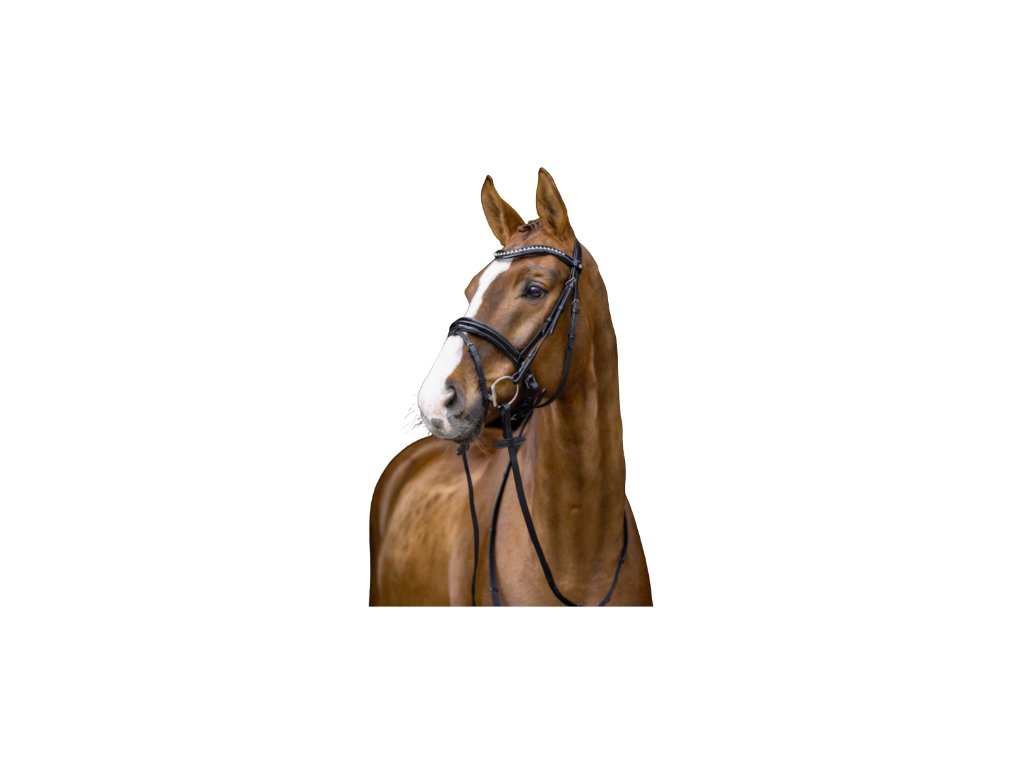Uzdečka od HKM s lakovaným nánosníkem a kamínkovou čelenkou.