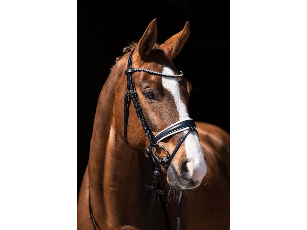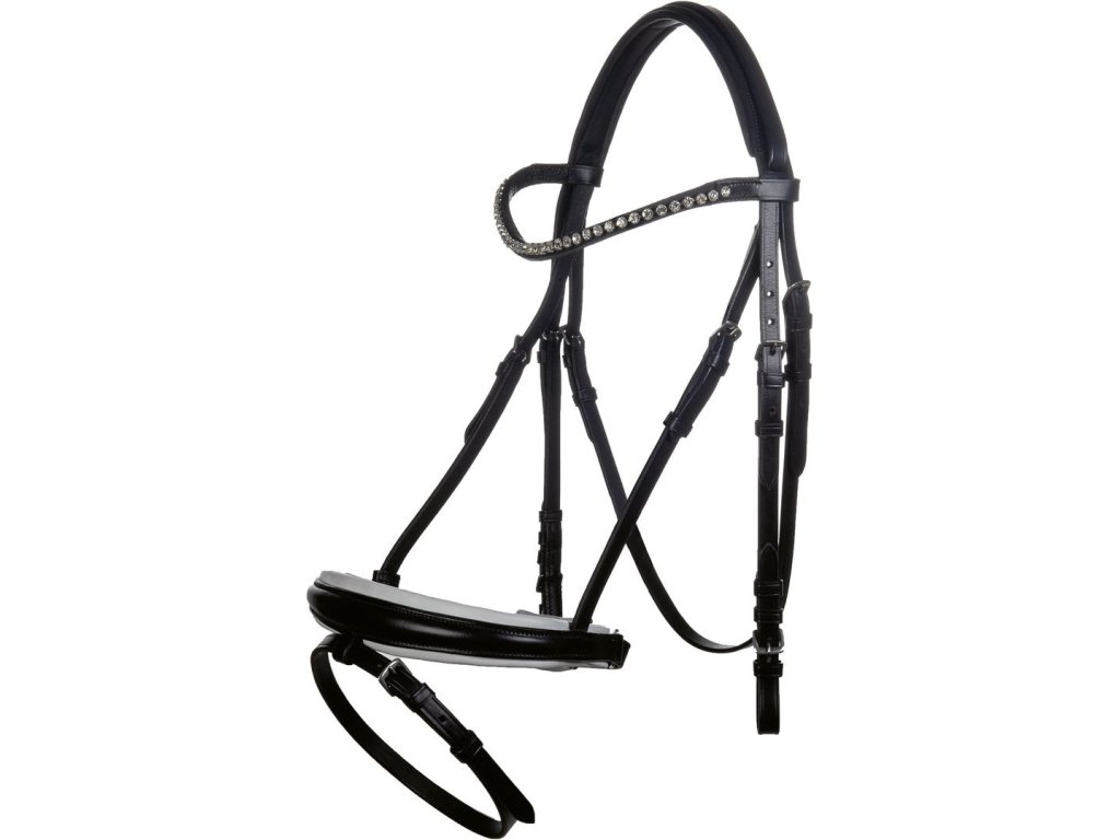Kožená uzdečka od HKM s kamínkovou čelenkou a měkkým polstrováním.