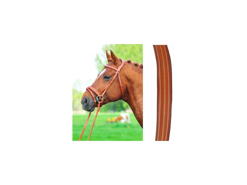 Uzdečka od HKM s elegantním bílým prošitím, měkký nánosník, pogumované otěže.