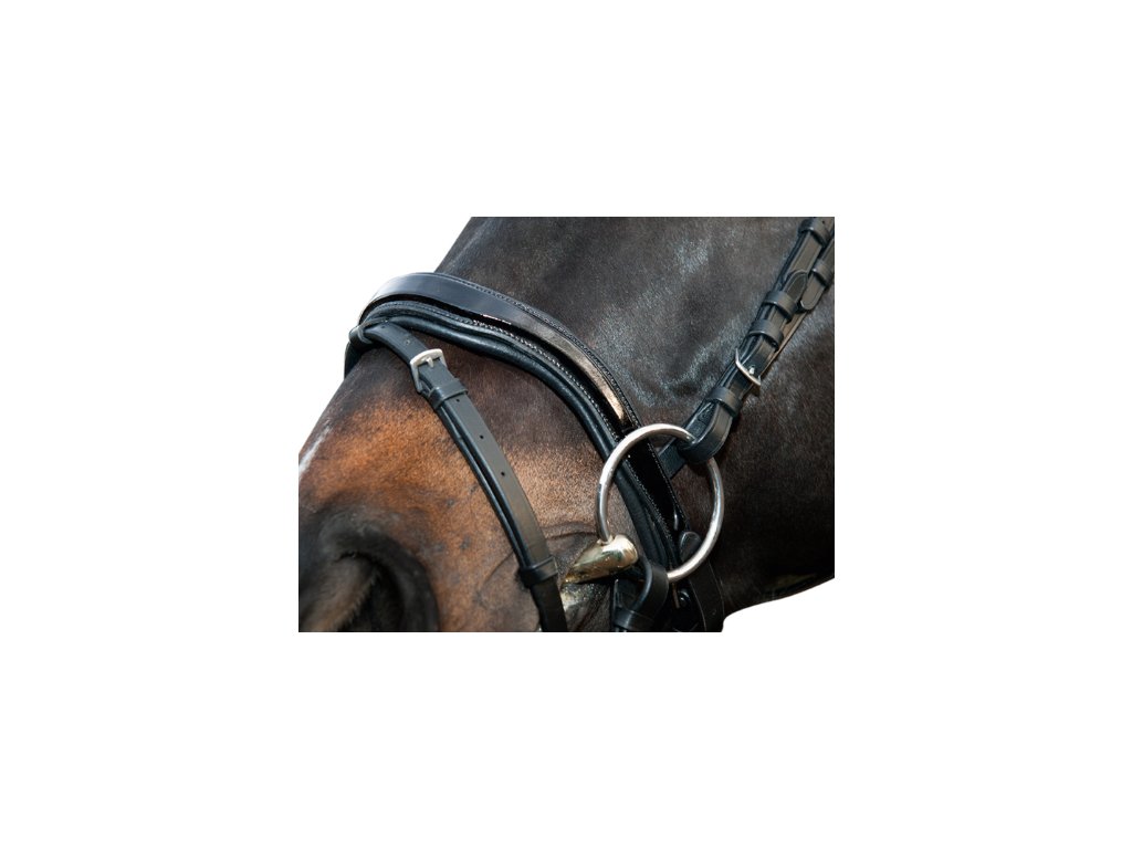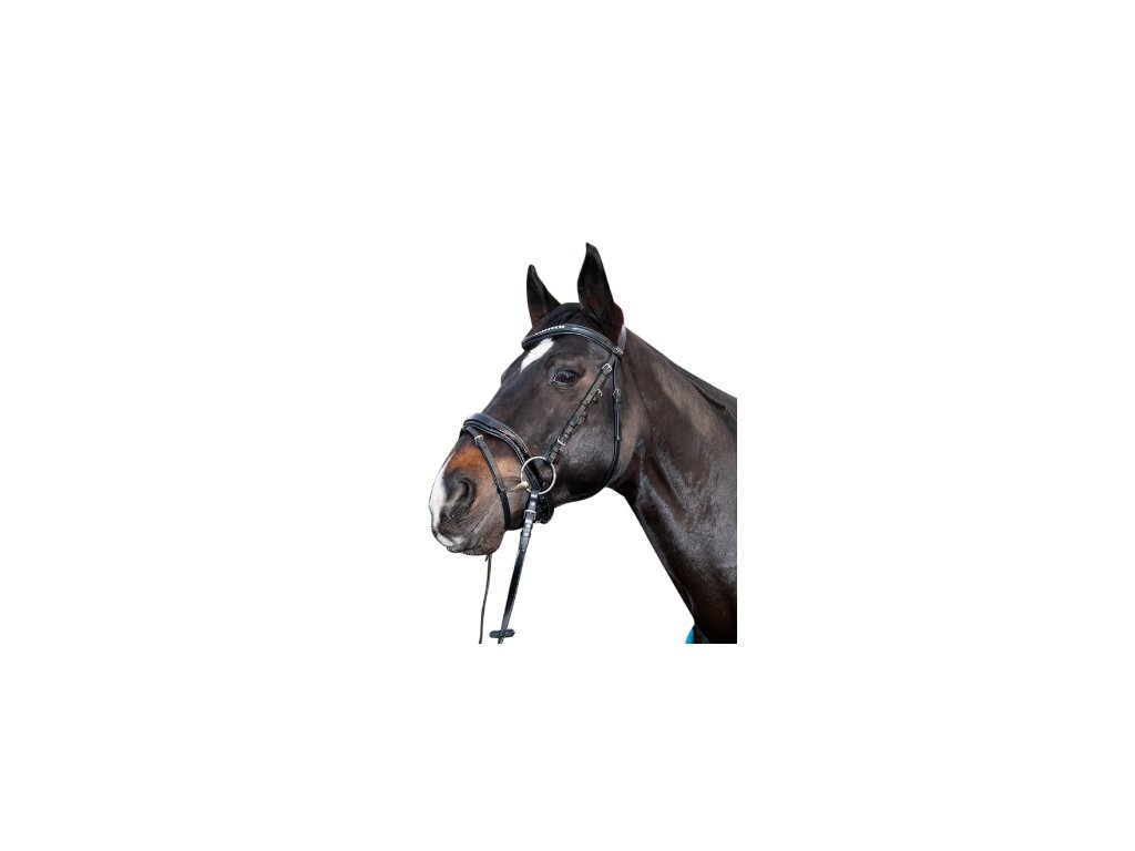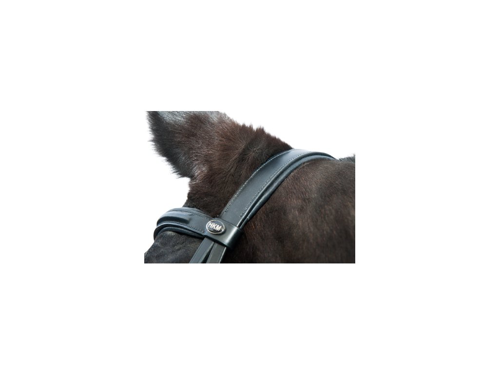 Kožená uzdečka s gelovým podložením od HKM s kamínkovou čelenkou v černé barvě.