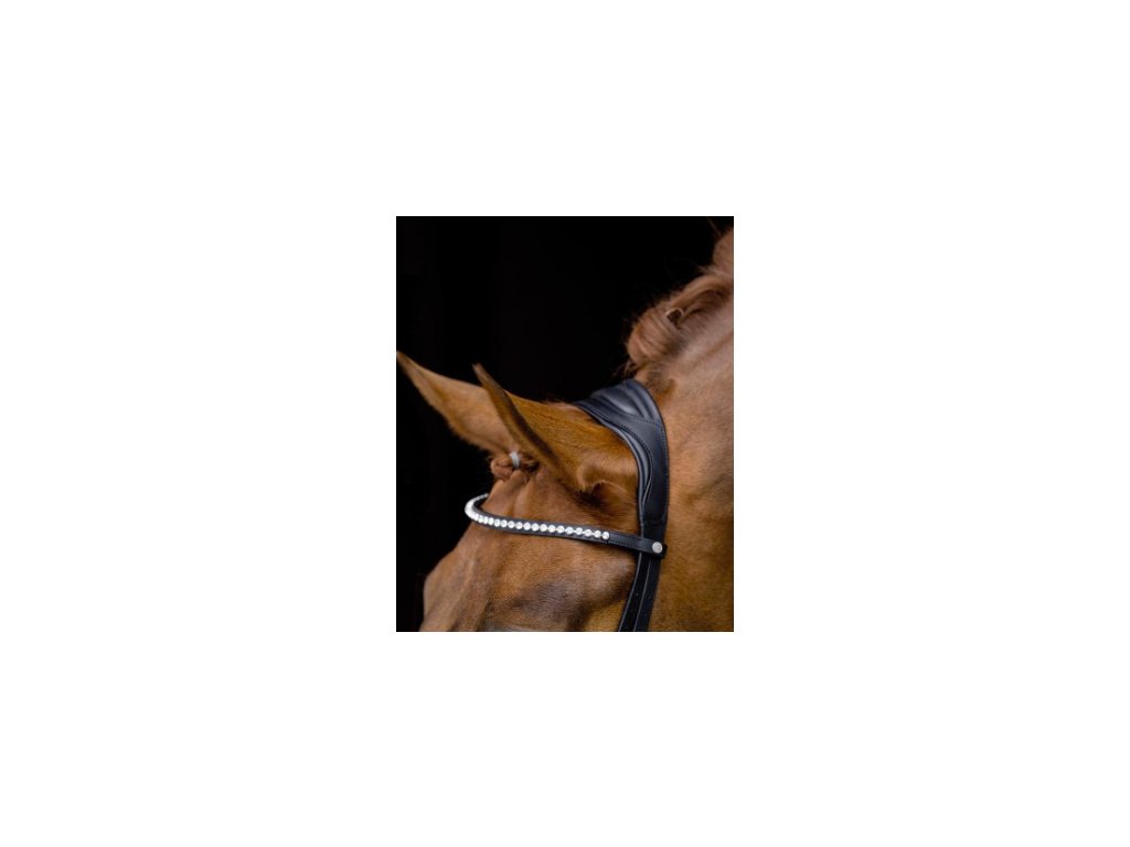 Anatomicky tvarovaná uzdečka od HKM, která zabraňuje tlaku na citlivé oblasti hlavy koně.