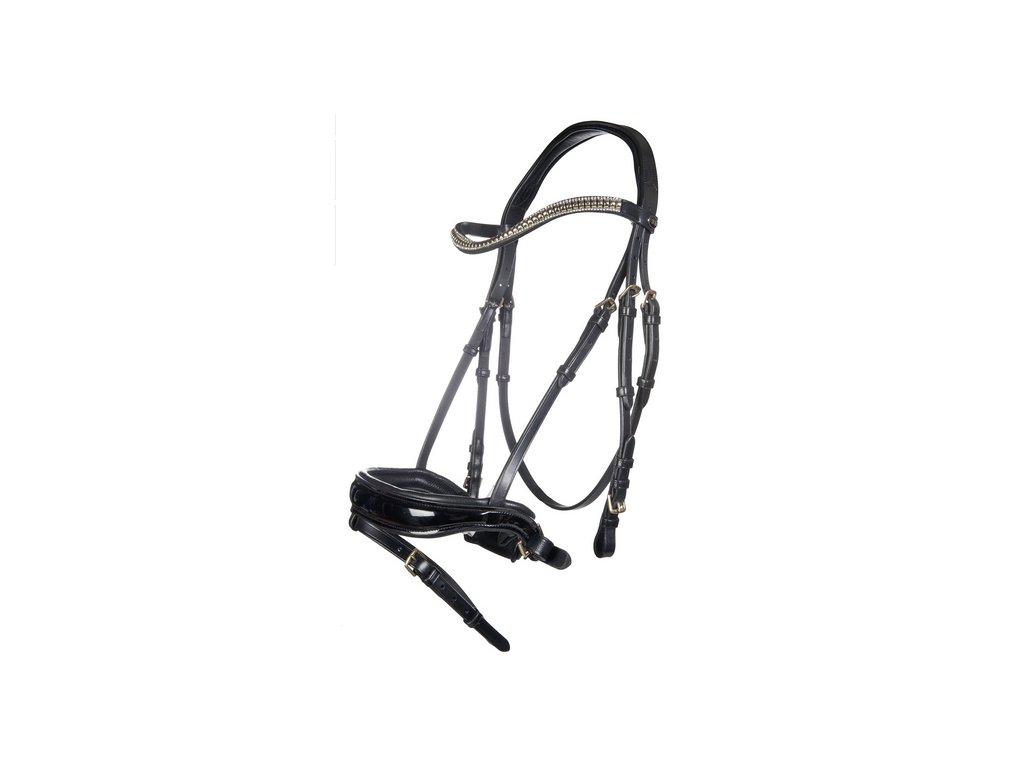 Uzdečka od HKM se švédským nánosníkem a kamínkovou čelenkou.