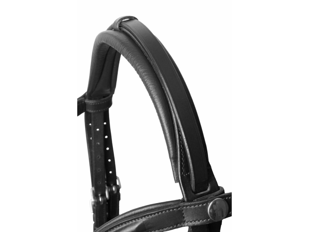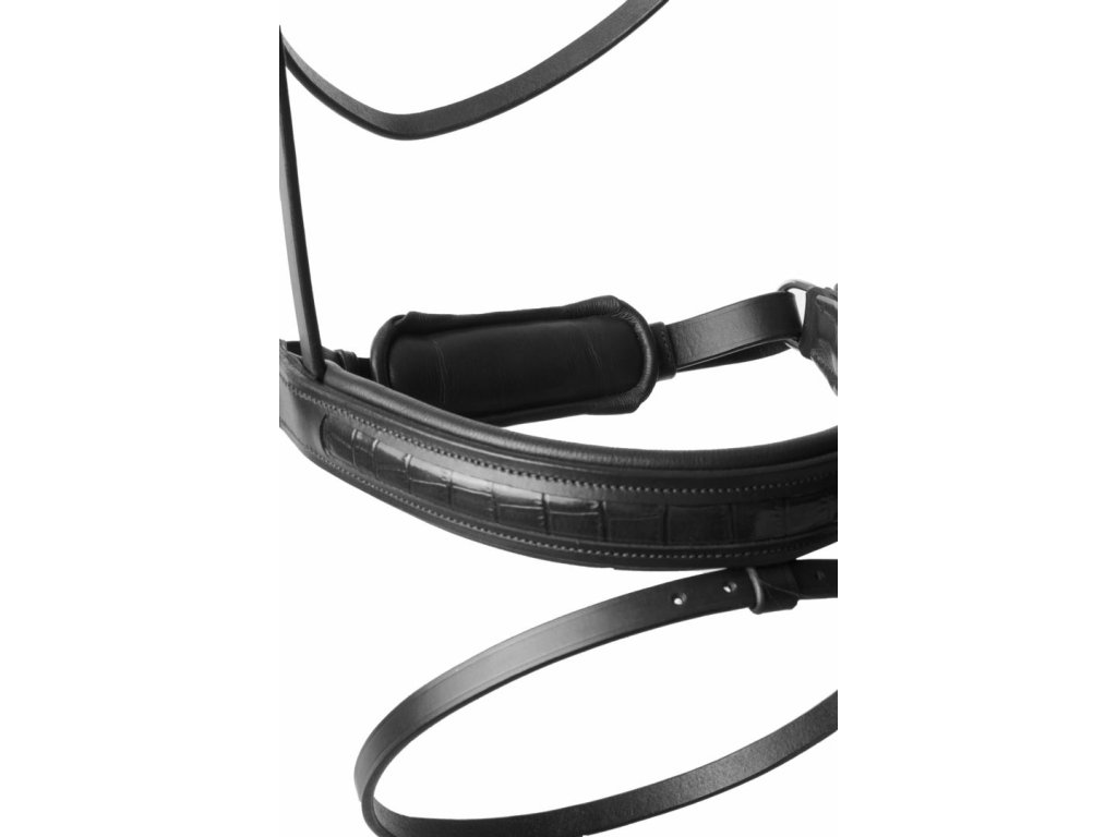 Velmi příjemná anatomická uzdečka od Horze. Měkkce vypodložený anatomický nátylník i nánosník. Kombinovaný švédský nánosník. Krokodýlý lesklý vzor na nánosníku i čelence. Součástí uzdečky nejsou otěže.