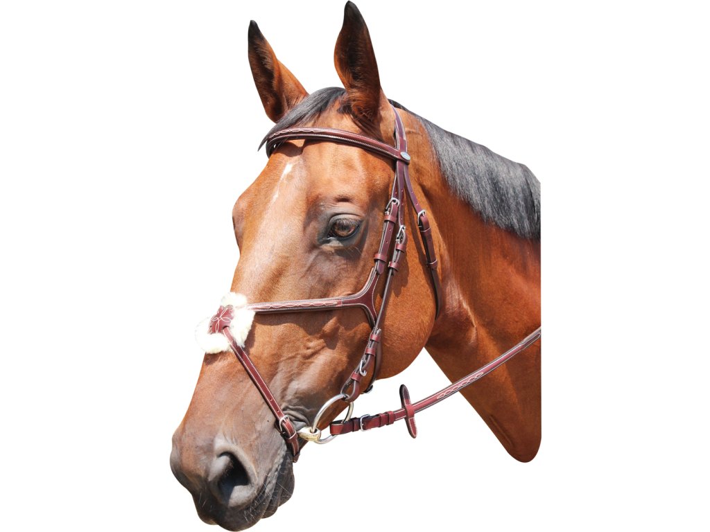 Uzdečka s mexickým nánosníkem, vyrobená z kvalitní italské kůže a dodávaná společností Kentaur. Foto hnědé uzdečky ilustrační.