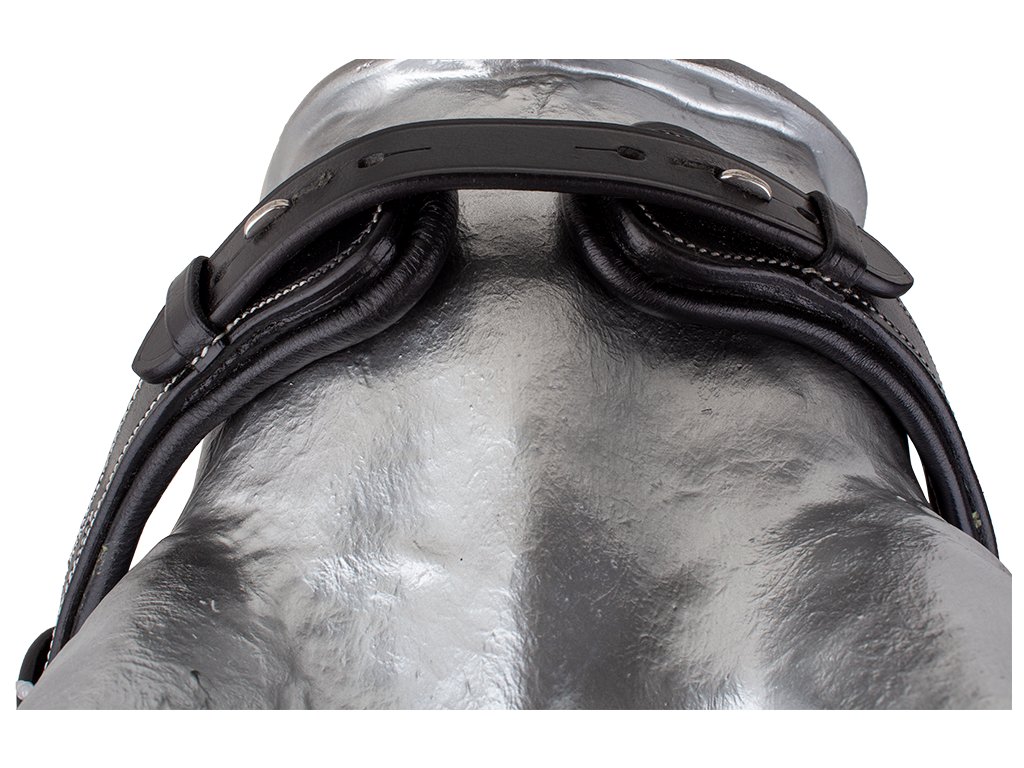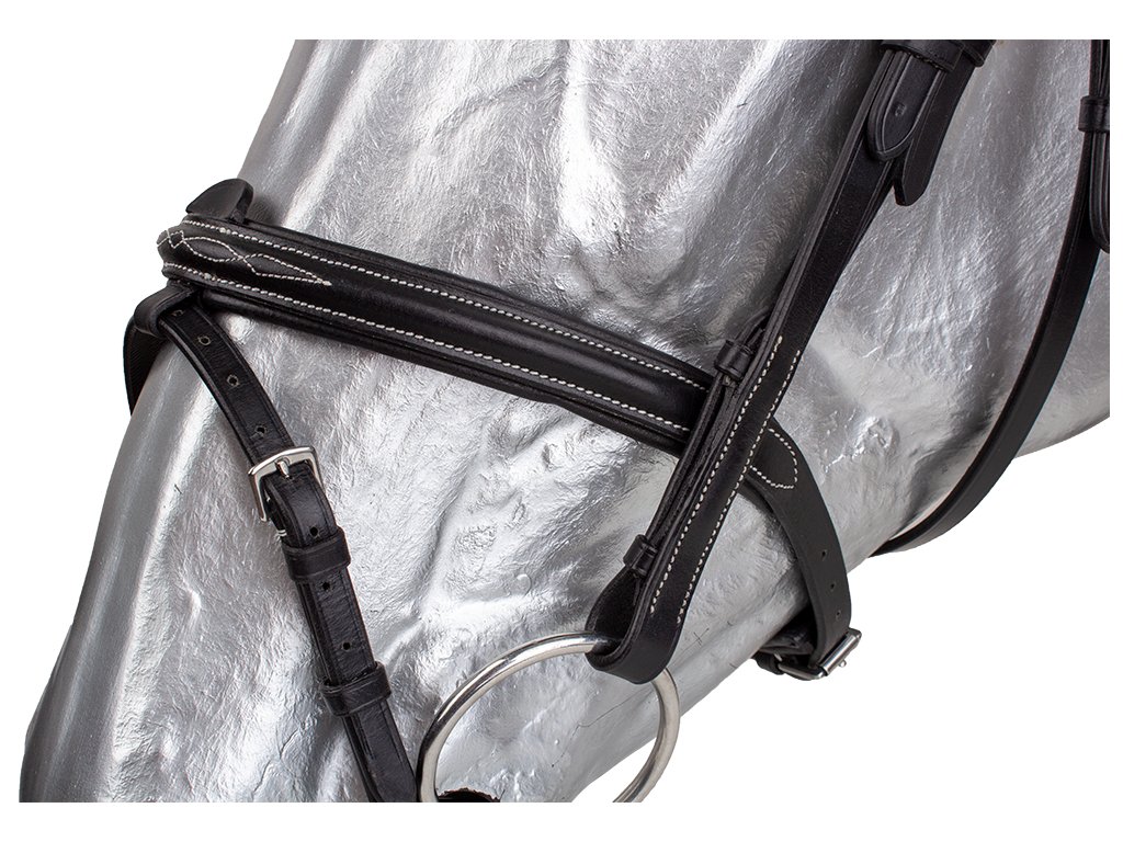 Uzdečka vyrobená z kvalitní kůže s měkce podloženým anglickým kombinovaným nánosníkem