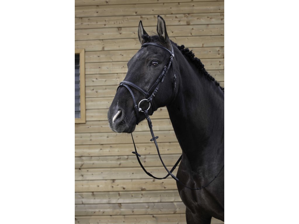 Jednoduchost a pohodlí v jednom. Tato uzdečka je navržena pro optimální komfort díky kombinovanému nánosníku a polstrované kulaté čelence. Součástí jsou kožené otěže s pěti zarážkami, které umožňují přesné vedení koně.